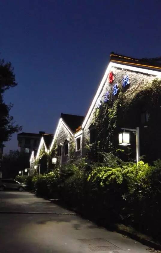 驳岸内侧的道路及绿化的部分,采用庭院灯和草坪灯形式,以点连线,并结合沿河道路两侧绿化的投射照明,形成一条自然生态的绿色夜景观长廊。